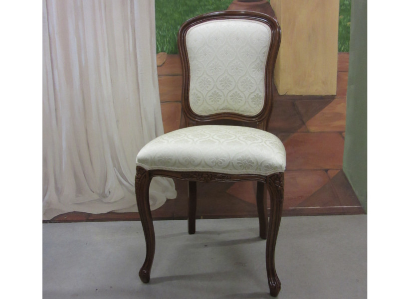 Sedia Mara liscia, laccata bianca e tappezzata con tessuto.