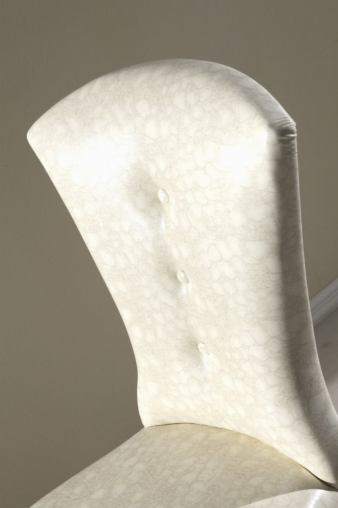Sedia Arco imbottita lucidata noce tappezzata in ecopelle lavorata.