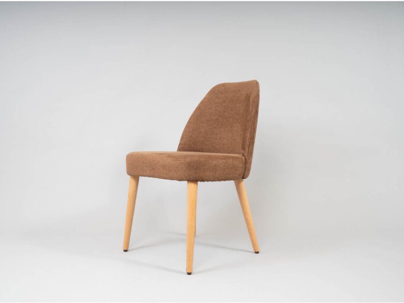 Sedia Ruben lucidata naturale, tappezzata con tessuto.